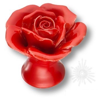 Ручка кнопка в форме розы 3060-RED, отделка Керамика, 32*d=40 мм